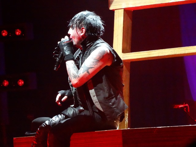 Prior to going to Universal, I didn’t really care if I saw Marilyn Manson play at the show last night. I own a few of his CDs, but only listened to them a few times about 10 years ago. Some of his stuff is pretty good, but I’m not big on the shock rock. And I’m still bitter about the time I was at a taping for That Metal Show when he was the guest. The A/C in the studio broke and he rambled on for endless time about nothing. I’ve never felt so drained from just sitting somewhere before. It was very creepy and hotter than hell.