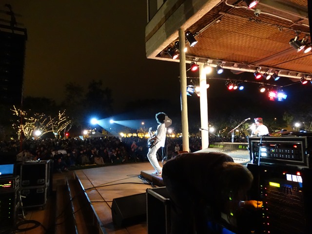 Constitution park was packed. There were thousands of people here. This was a large concert. The amount of people in line for the outhouses outnumbered rivaled the size of the crowd for a normal draw of an average touring band.